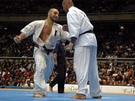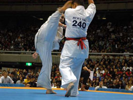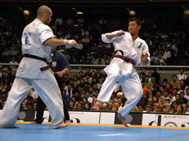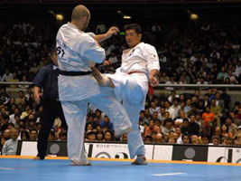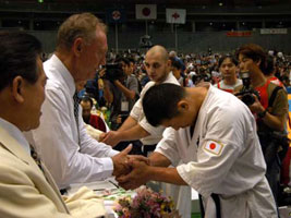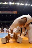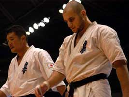 бойцы. Мацуи, Курасава на тот период времени были моими кумирами. Но прошли годы тренировок и участвуя в различных турнирах российского и мирового уровня, я осознал, что смогу при хорошей подготовке войти в восьмерку сильнейших, выйти в финал было для меня за гранью реальности. 8 ЧМ, 240 участников, 64 страны, думая о таком количестве бойцов, я понимал, что могу на любом этапе проиграть. Выходя на татами моей целью было только одно - драться до конца. Бои были разные, то, что планировал обычно не получалось, первые поединки казались тяжелыми и невольно приходили мысли "а какие бойцы будут драться завтра!?". Но после тамешивари, увидев, что японские и бразильские бойцы ломают меньше досок, чем я, понял, что у меня физически удар сильнее. Чем могут ответить японские бойцы - это функциональной выносливостью и Духом. Но, тренируясь в составе сборной команды, при помощи и поддержке Шихана А.В. Фесенко мы смогли улучшить физическую, функциональную и духовную подготовку до уровня не хуже, а намного лучше, чем у японцев. Сборная России могла показать более лучший результат, но причин, препятствующих этому было несколько, для многих турнир такого уровня первый, не првильно выбранная тактика, ну, и конечно же судейство. В равных боях предпочтение отдавали японским бойцам. Турнир, в целом, прошел на высочайшем уровне, организовано было все отлично, большая заполняемость зала в течении всех 3 дней. Хочу, так же , поблагодарить всех болельщиков из России, которые нашли возможность приехать и болеть за российских бойцов, ведь нам так нужна была Ваша поддержка. С уважением, Сенсей С.П. Плеханов |