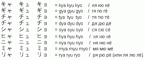 Примечание: вместо слога "va / ва" может свободно использоваться слог "ba / ба", ибо в японском языке разницу между ними различить не удалось (да ее и нет).