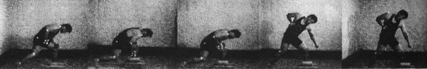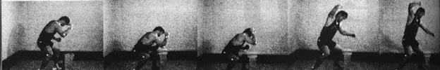 На человеке отмечались контрольные точки для определения траектории движения частей тела и последующего измерения скорости и ускорения.