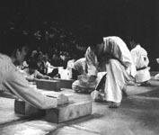 Тамешивари в исполнении японского мастера Киокушин каратэ Абэ