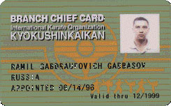 PukasВалерий Пукас 5 Dan Branch Chief Card |