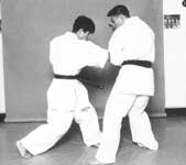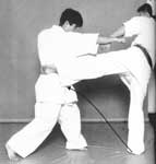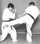 | Блок с одновременым уходом с линии атаки закручиванием корпуса и контратака гедан маваши гери |
