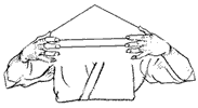 углом 45 градусов. Представьте себе, что из этих локтей выходят нити, которые