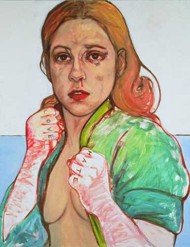 поединка обнаженной женщины с мужчиной. |