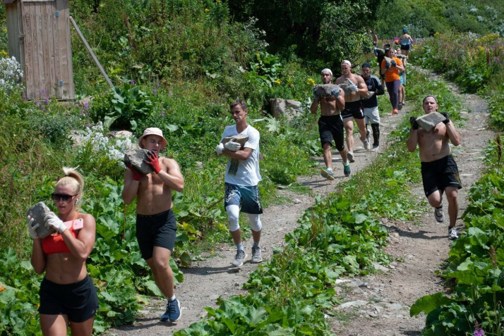 Вторая тренировка после завтрака, она посвящена скоростно-силовым качествам. На стадионе или наверху в горах. Вечерняя тренировка – это работа в парах и работа на снарядах.