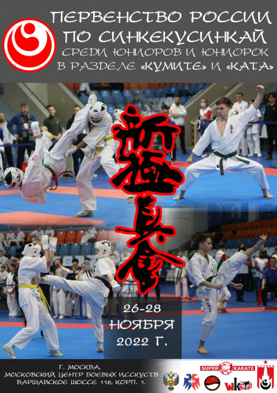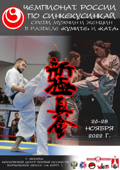 27 ноября 2022 года в Московском Центре Боевых Искусств пройдут Чемпионат России по синкёкусинкай среди мужчин и женщин и Первенство России синкёкусинкай среди юниоров и юниорок.26 ноября в гостинице «Севастополь» состоится комиссия по допуску, жеребьевка и судейский семинар.