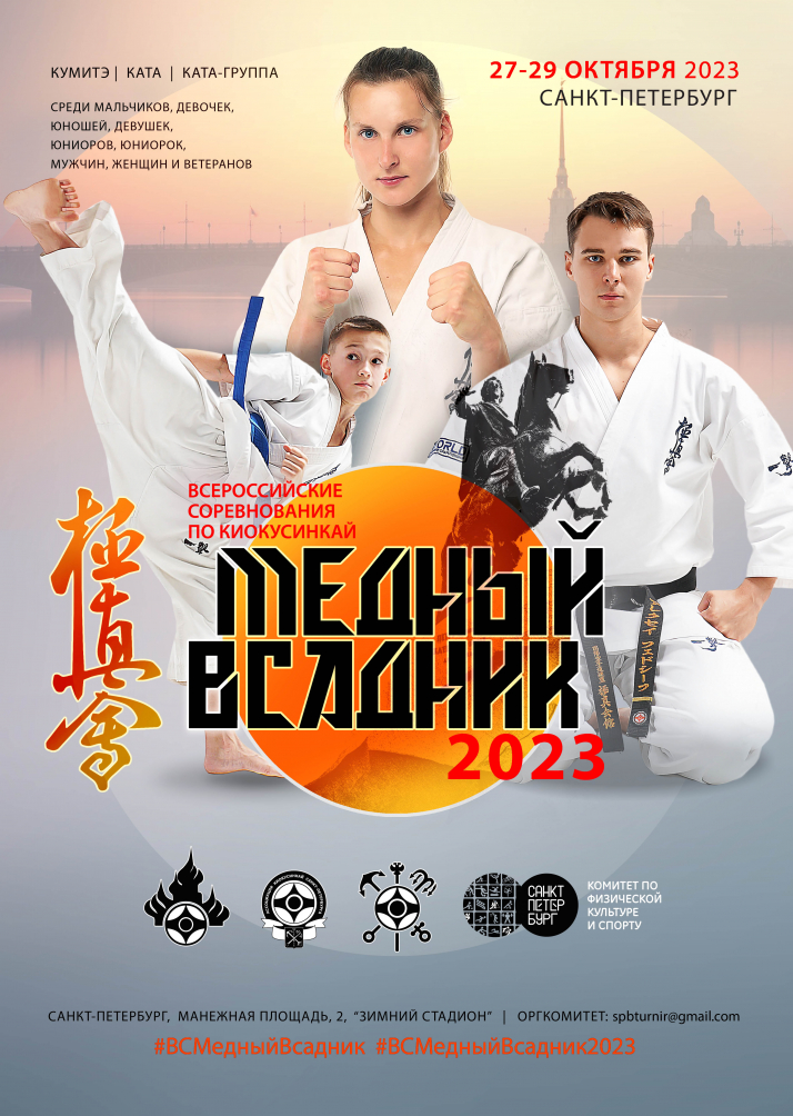 28-29 октября 2023 года в Санкт-Петербурге пройдут Всероссийские соревнования по киокусинкай «Медный всадник» среди мальчиков, девочек, юношей, девушек, юниоров, юниорок, мужчин и женщин (весовые категории, ката, ката-группа).Пакет документов
