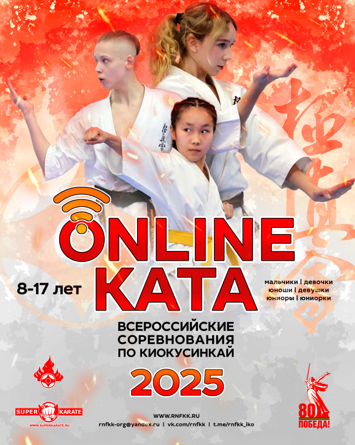 Всероссийские соревнования «Онлайн-ката» 2025. Турнир в возрастных категориях 10-17 лет включен в Единый календарный план Минспорта РФ на 2025 год (СМ № 2173770021027860).В приложении пакет документов по Всероссийским онлайн-соревнованиям по ката киокусинкай (8-17 лет).