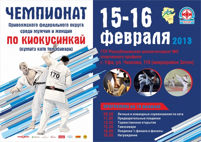 16 февраля 2013 дня в Уфе пройдет Чемпионат Приволжского федерального округа среди мужчин и женщин по киокусинкай (кумитэ, ката, тамэсивари).