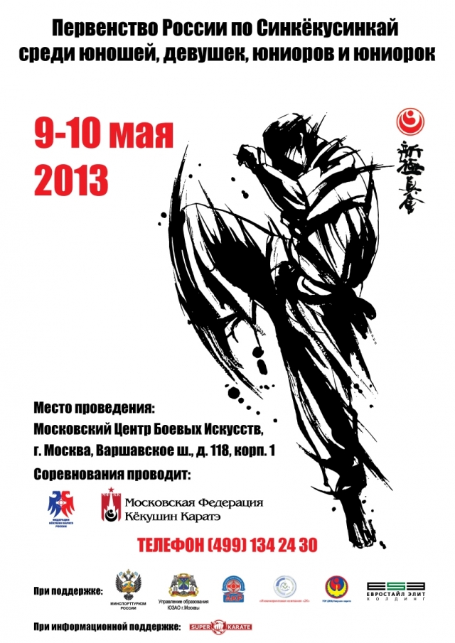 9-10 мая 2013 года в Московском Центре Боевых Искусств пройдет Открытое Первенство России по Синкекусинкай (Шинкиокушинкай) для возрастов 12-17 лет.