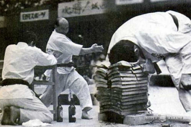 2. Разбивание черепицы во время показательного выступления Нидеюки Ашихара.