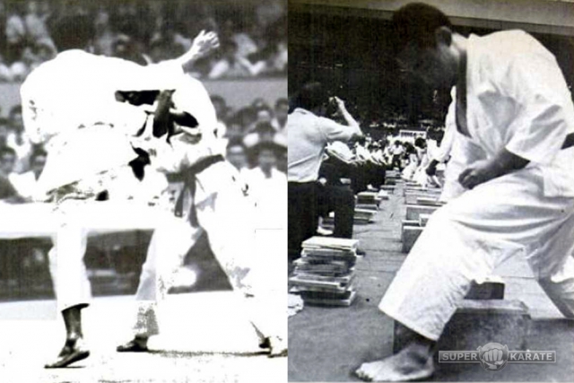 Мас Ояма и его главный помощник [Хидэюки Ашихара] продемонстрировали сверкающую силу каратэ на специальной демонстрации в середине турнира.