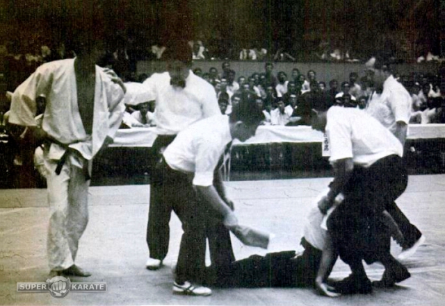 Но это был дикий турнир. Причём за пределами татами происходили не менее важные события, чем на татами. У судей были постоянные столкновения как между собой, так и с участниками соревнований и тренерами различных фракций каратэ.