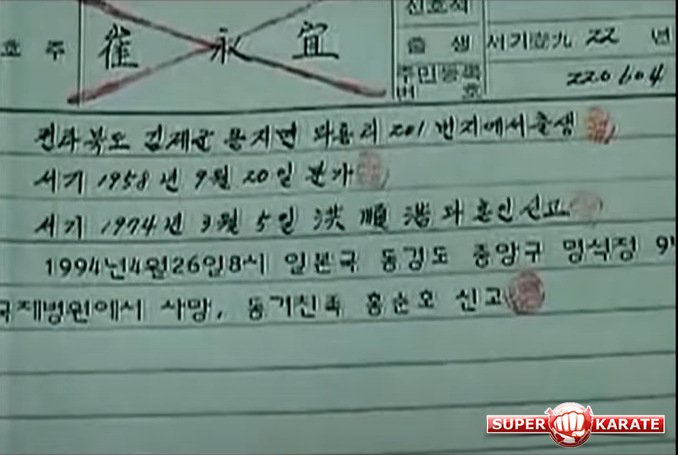 После той встречи с Чхве-тхэквондистом Ояма впервые за 28 лет посетил Южную Корею, и «к своему удивлению, обнаружил», что там он числился в семейном реестре под своим корейским именем и с датой рождения 4 июня 1922 года.