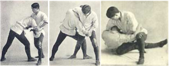 Важным моментом здесь является то, что в этих техниках дзюдзютсу защищающийся не соревнуется, чтобы бросить опытного противника, как в современном дзюдо, а отвечает на атаку, причем нападающий обычно не имеет никаких знаний о техниках дзюдзютсу. Кроме того, здесь задействовано нечто большее, чем просто дисбаланс. Это дополнительно иллюстрируется другой техникой дзюдзютсу, показанной ниже.