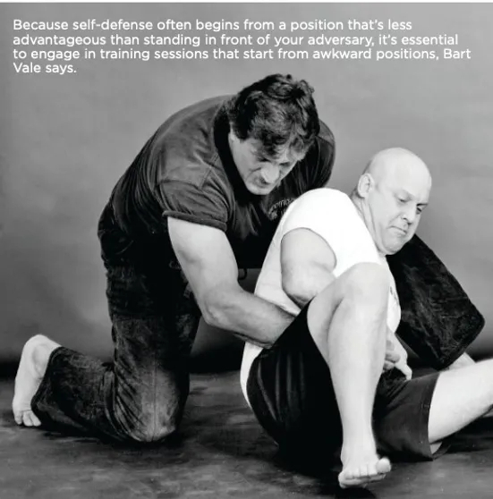 «Не ограничивайте себя, всегда начиная с ног с первого момента атаки. У вас также должны быть приемы, которые сработают за тот короткий промежуток времени, который у вас будет, когда вы начнете упражнение со спины с уже зафиксированным удушением», – советует Вейл.