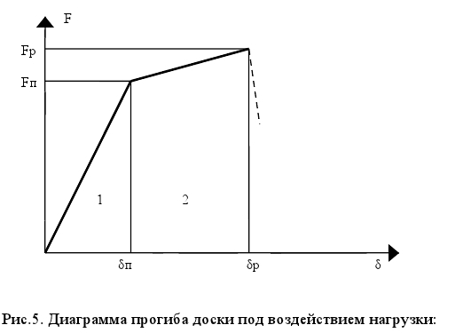 а также энергию динамического разрушения доски: Wp = 1,1Fп δп (kδ – 0,54) = 1,6 Fр δп (13),
