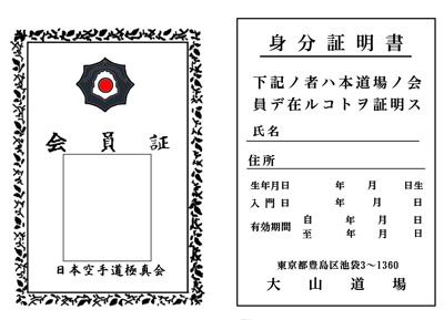 Приблизительно в это время начали выдавать членские карточки Ояма Доджо. Форма этого членского билета была также использована в карточке Ашихара Доджо Организации Кёкусинкайкан.