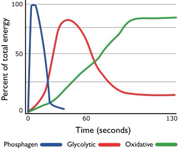 То есть я бы мог написать, что интенсивная тренировка это не всегда анаэробный гликолиз, или что любая интенсивная тренировка длительностью более 1-2 минут неизбежно становится анаэробно-аэробной (см. рисунок), что при ЛЮБОЙ деятельности ВСЕ ТРИ энергосистемы в клетке разворачиваются одновременно и большая часть публики, поцокав языками, разошлись бы; часть продолжать делать тяжелые интенсивные тренировки по Гласману, а часть скоростно-темповые (но, видимо, не интенсивные) тренировки по Дедику.Но это было бы слишком просто и это было бы неправдой. К тому же прозвучало слово митохондрии. Я люблю митохондрии. Я знаю как они работают. Я даже когда-то писал работу о симбиотической теории происхождения митохондрий.