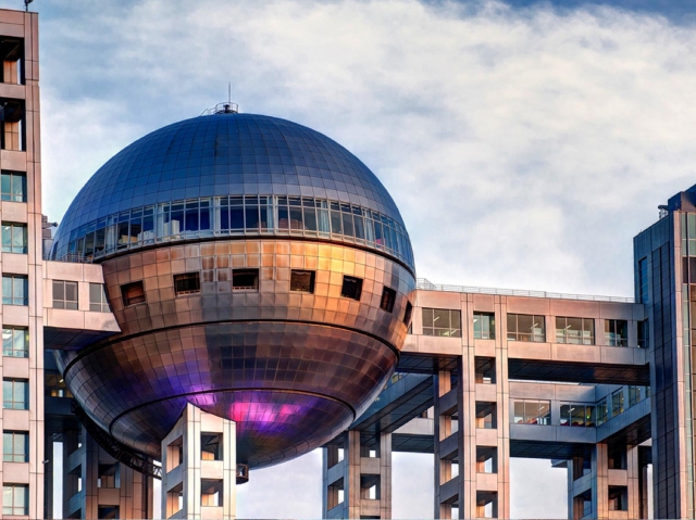 - Здание «Fuji TV» - штаб-квартира телевизионной компании Фудзи как раз одно из тех удивительных сооружений, как будто спроектированных не инженерами, а писателями-фантастами. Все лестницы, эскалаторы и лифты вынесены «наружу» на фасады. А в центре здания, огромном титановом шаре, вы найдете магазины, рестораны, обсерваторию и смотровую площадку с видами на Токийский залив.