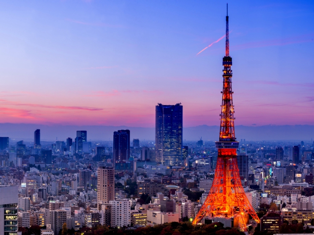 - Tokyo Tower – красно-белая копия Эйфелевой башни, построенная в 1958 году. Внутри вы найдете сувенирные лавки, магазины, музей восковых фигур и смотровую площадку на высоте 250 метров. Главная прелесть башни заключается в разнообразной ночной подсветке.