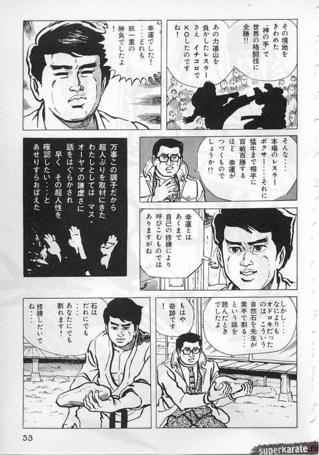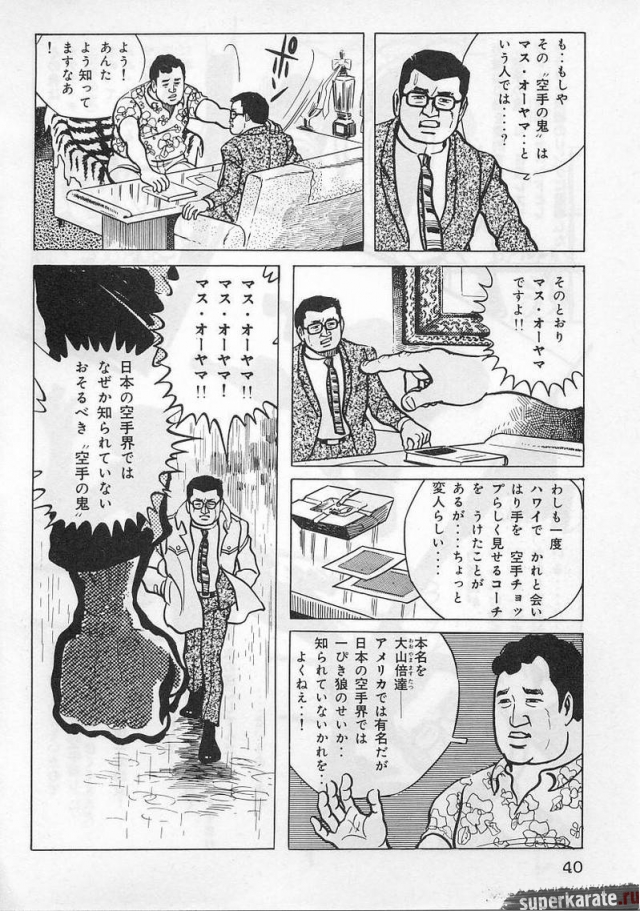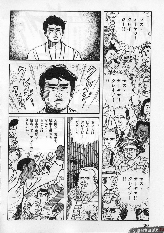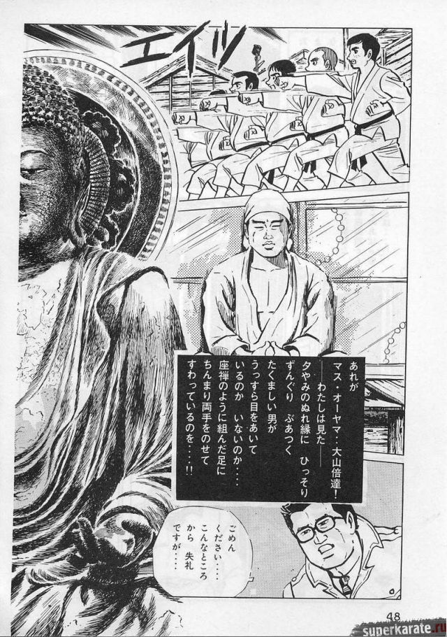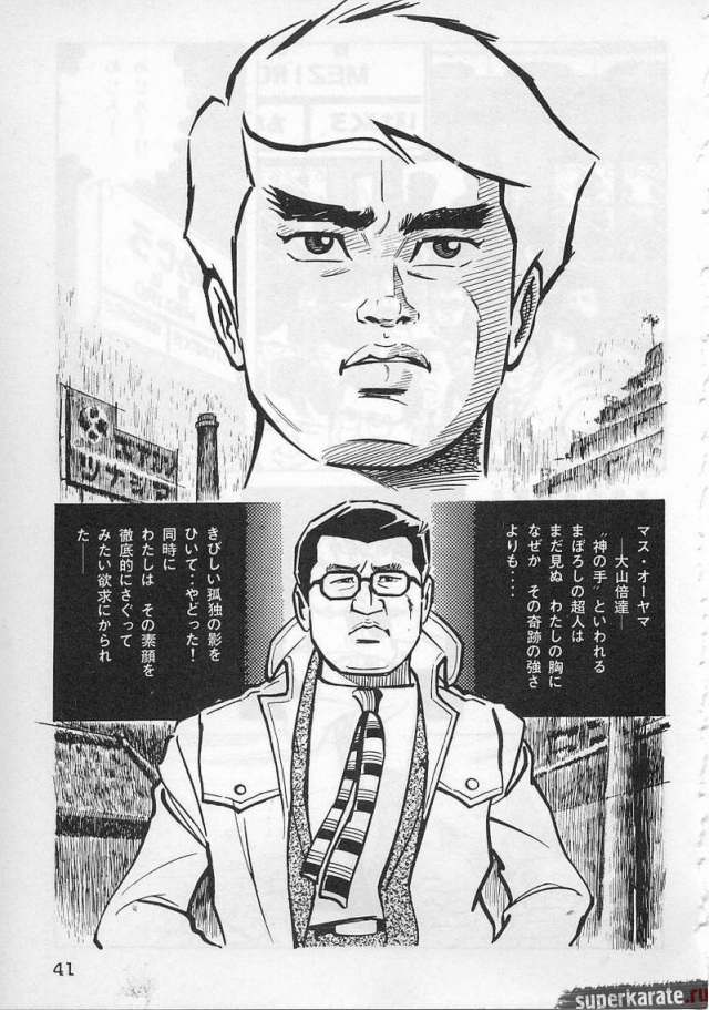 В 1971 году в Японии увидела свет легендарная киокушиновская манга «Каратэ бака ичидай» (Karate Baka Ichidai, 空手バカ一代, "A Karate-Crazy Life"), автором которой стал Икки Кадживара. Вдохновленный каратэ созданным Масутацу Ояма, на основе жизненного пути сосая и его соратников, Кадживара создал книжную историю в картинках, которая по признанию многих известных японских каратистов предопределило их жизненный путь. Предлагаем вам самим взглянуть на книжные подвиги Сосая Оямы.Каждый выпуск «Каратэ бака ичидай» содержит около 350 страниц, поэтому мы решили разбивать выпуски на части, для удобства просмотра.