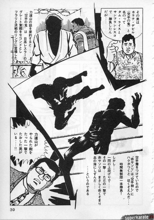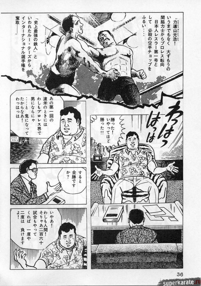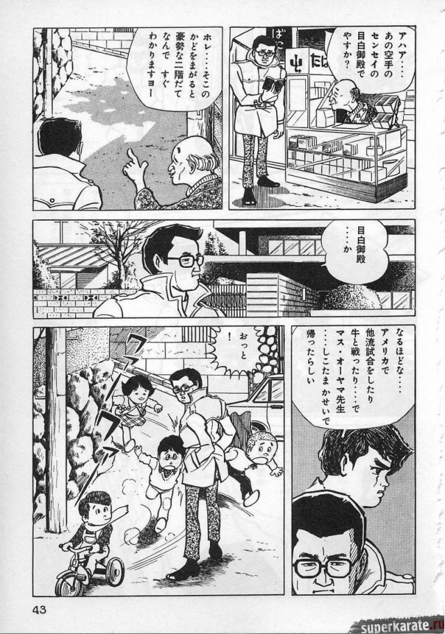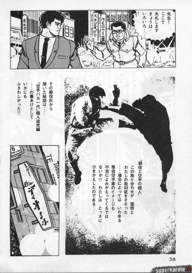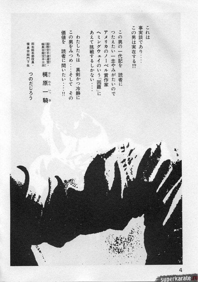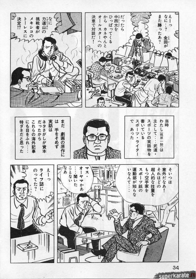 В 1971 году в Японии увидела свет легендарная киокушиновская манга «Каратэ бака ичидай» (Karate Baka Ichidai, 空手バカ一代, "A Karate-Crazy Life"), автором которой стал Икки Кадживара. Вдохновленный каратэ созданным Масутацу Ояма, на основе жизненного пути сосая и его соратников, Кадживара создал книжную историю в картинках, которая по признанию многих известных японских каратистов предопределило их жизненный путь. Предлагаем вам самим взглянуть на книжные подвиги Сосая Оямы.Каждый выпуск «Каратэ бака ичидай» содержит около 350 страниц, поэтому мы решили разбивать выпуски на части, для удобства просмотра.