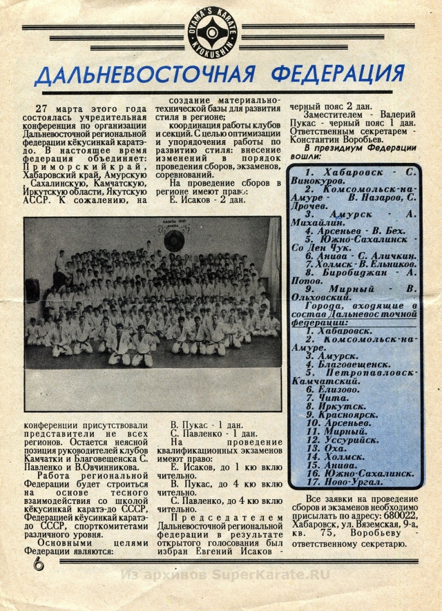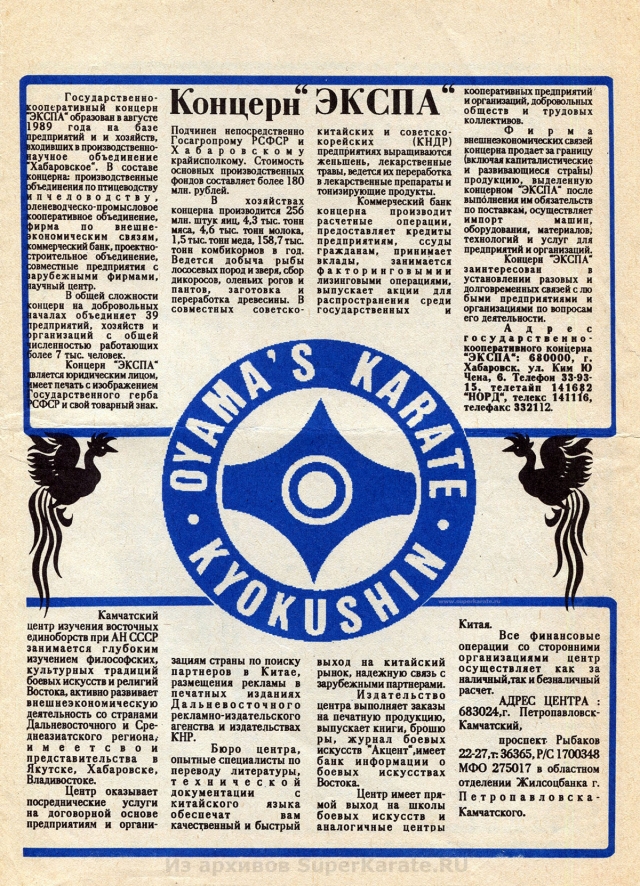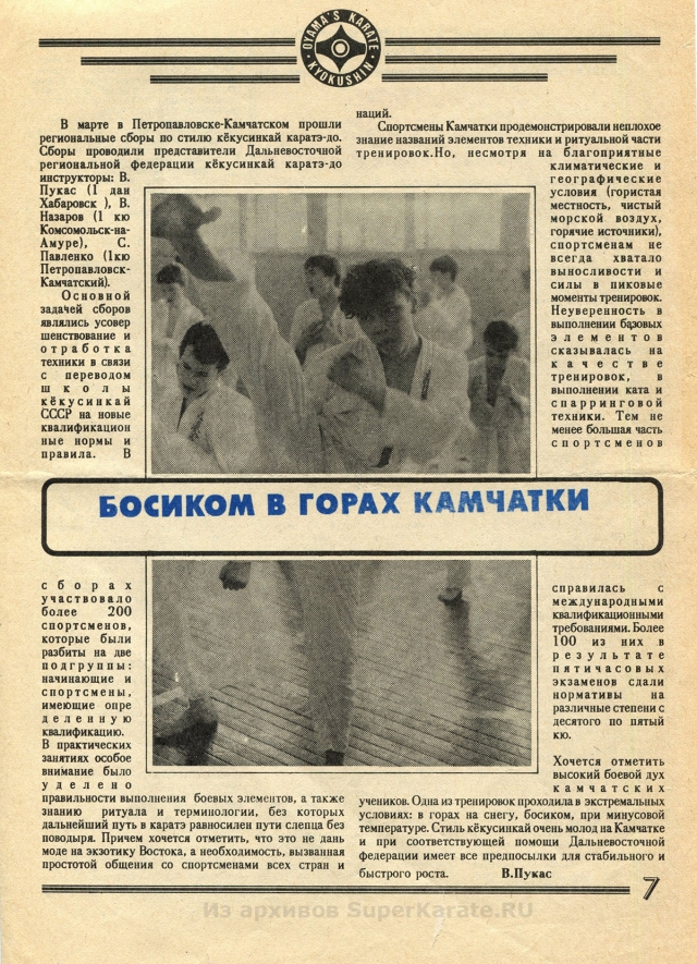 В 1990 году в Петропавловске-Камчатском вышел информационно-методический вестник Karate Kyokushin USSR (Киокушин каратэ СССР). Это одно из первых печатных изданий посвященное каратэ киокушинкай в СССР, которое в свое время можно было приобрести всего за 1 рубль 50 копеек. Благодаря таким информационным изданиям, киокушин распространялся по всей стране.