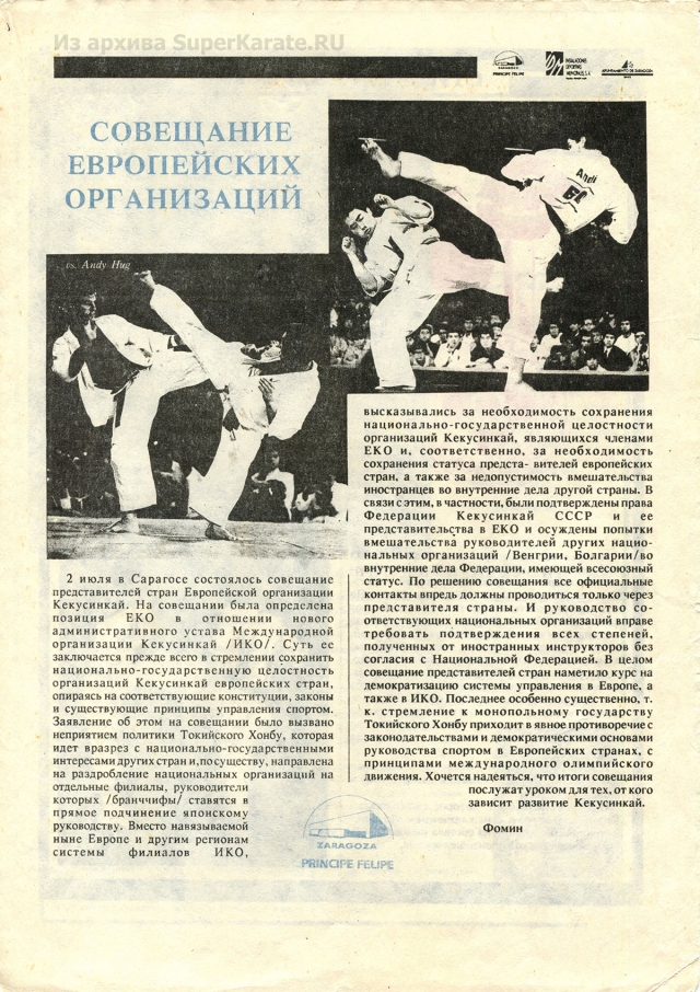 На конференции постановили: В связи с невозможностью продолжения сотрудничества с Дальневосточной Региональной Федерацией, конференция сочла необходимым лишить ДВРФ прав, ранее делегированных ей Федерацией Кекусинкай СССР от имени Госкомспорта СССР...