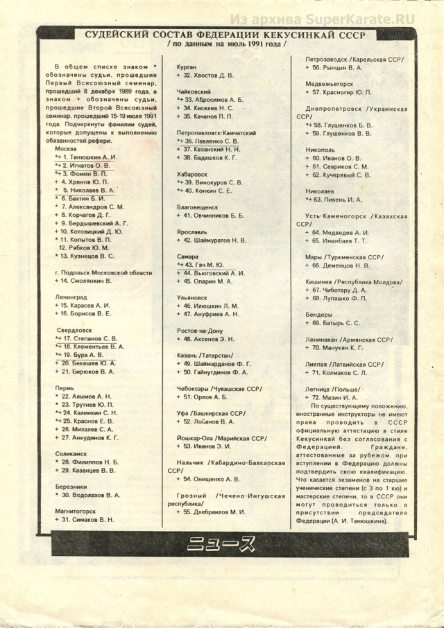 Спецвыпуск «Каратэ Киокушин СССР - 1991»