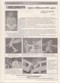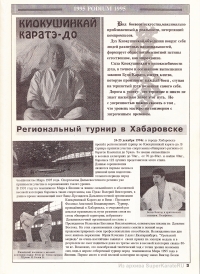 Рекламно-информационное приложение к журналу Сила каратэ увидело свет в январе 1995 года и в итоге успешно пережило сам журнал. Первый номер приложения открывает статья об истории каратэ; разбор регионального турнира в Хабаровске (1994), на котором в финалах весовых встречались: Бабаев Максим - Зельцен Иван, Шумин Игорь - Виктор Белов, Мамурин Константин - Габбасов Рамиль; информация о правилах тамэшивари и большая статья про айкидо...