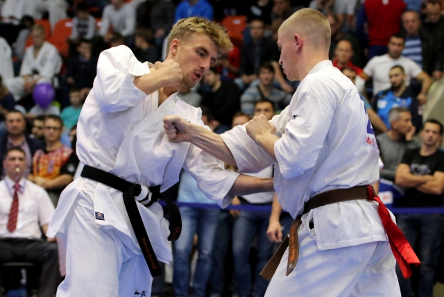 Максим Екимов - младший брат бойца сборной прошлого чемпионата мира Влада Екимова, который на прошлом чемпионате отличился самыми красивыми нокаутами. Теперь пришла очередь Максима показывать яркое каратэ.