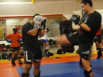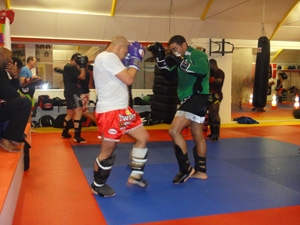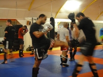 Возвращаясь к возможным травмам. Что мне тоже понравилось у Карбина, его тренировки поставлены с точностью хирурга. Процесс идет с минимальными травмами. Он и технику тебе хорошо ставит, и силу в ударе прибавляет, и о набивке не забывает, и у тебя при этом ничего не болит. У нас в России как обычно принято – встали на тренировке друг перед другом и вперед - ломать друг друга. К соревнованиям все подходят покалеченными. А у Карбина как-то так получается, что ты одновременно и силу ставишь, и технику, и еще он с тобой на лапах и падах повозится, и на мешке весь выложишься и цел останешься. Я получил огромное удовольствие от таких занятий! И обратил на это внимание, потому что у нас в России все равно кто-то с кем-то на тренировке зарубится и начинается работа кость в кость. Здесь такого нет, хотя все вроде вкладываются тогда, когда надо.