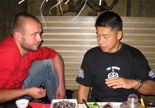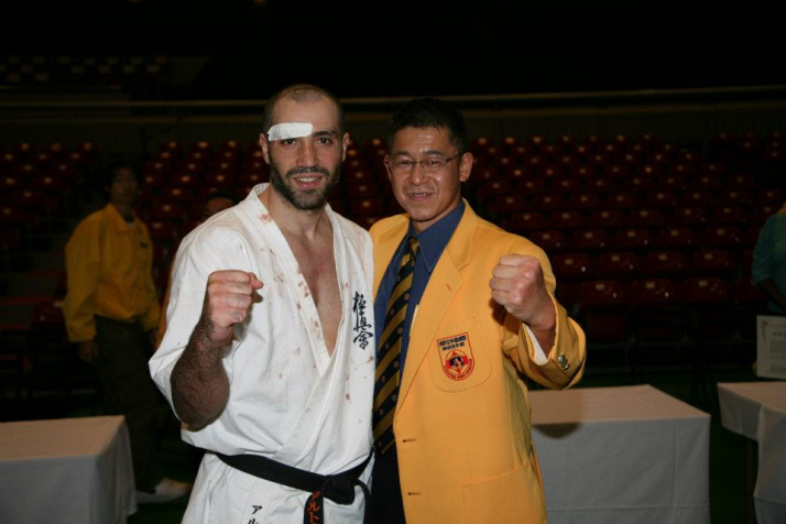 Шихан… меня узнал! Хотя виделись мы последний раз в 2000 году, на зимних сборах в Екатеринбурге. Возможно он меня хорошо запомнил, потому что мы стояли лицом к лицу босиком на снегу, голые по пояс и орали «Кияй!». Вокруг бродили лыжники, их наверняка удивляли раздетые по пояс идиоты в 15 градусный мороз. Шихан Фукуда рассказал, что потом кожа с его стоп слезала, как шкура со змеи.