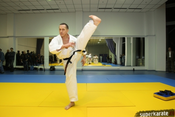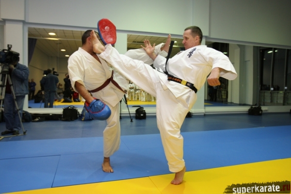 Трутнев: Можно. На первый взгляд, несколько странное правило, ведь удар в голову рукой является самым простым способом завершения любого поединка. Тем не менее, занимаясь этим стилем довольно долго, я убедился, что в этом запрете и большая справедливость, и большой смысл. Стиль единоборства, это всегда компромисс между эффективностью и отсутствием травм, а человеческая голова все-таки плохо приспособлена для того, чтобы ее бить. Защититься от ударов руками полностью практически невозможно. Известно, что многие боксеры заканчивают свою карьеру, теряя слух, зрение. Касательно кекусинкай могу сказать, что за 15-20 лет выступлений я пропустил, максимум, 2-3 удара ногой, и то, это были легкие нокдауны. Ни одного нокаута за спортивную биографию у меня не было. Так что, на мой взгляд, кекусинкай хорош тем, что позволяет максимально развивать собственную технику и эффективно ее применять, оставляя при этом людям возможность выходить из спорта здоровыми.