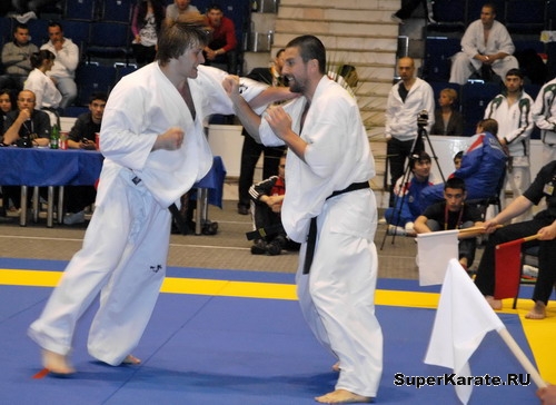 С Эстенсоро мы уже встречались в Париже на Абсолютном Чемпионате Европы. Тогда я проиграл ему. На этом же чемпионате ему проиграл и Вусал Исмаилов в полуфинале. Потом Вусал мне много рассказывал про его плюсы и минусы. Поэтому тут я уже был принципиально готов выигрывать у него. У меня были личные мотивы – отомстить и за себя, и за друга. Ну, а за румына болела вся страна, и судьи боялись сделать лишнее движение в мою сторону. Вообще парень попался терпеливый и духовитый, но особой техники у него не было. Я знал, что выигрываю по доскам, в первом и втором времени выложился на полную, даже по себе чувствовал, что выигрываю, а когда судьи давали ничью, я был просто шокирован. Последнее время решил отодраться на ничью, поскольку знал, что по доскам выиграю, а победу отдали ему. Но не хочу винить только судей, ведь за мной тоже большой «прокол», - нужно было еще в первом времени на «вазари» или на «иппон» отбивать ногу и все!