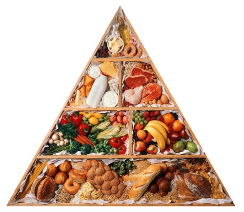 Наглядно рекомендации в питании человека были представлены в начале 80-х годов министерством сельского хозяйства в виде пищевой пирамиды. Вот как она выглядела: