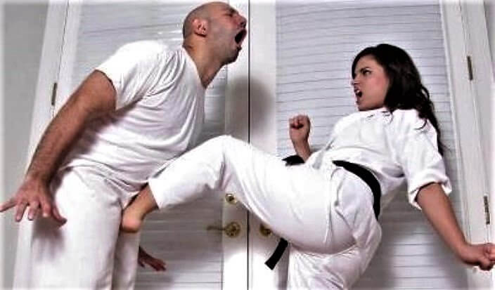 Есть старый анекдот времён романтизма восточных единоборств. Когда молодого начинающего адепта кунфу спрашивают, что он сделает, когда ему нанесут удар ногой в пах, тот отвечает: - «Поставлю блок». Когда о том же спрашивают продвинутого адепта, тот отвечает: - «Поставлю блок, нанесу ответный удар». А вот старый мастер, отвечая на этот вопрос, заявляет: - «Напрягу мошонку, пусть ломает себе ногу».