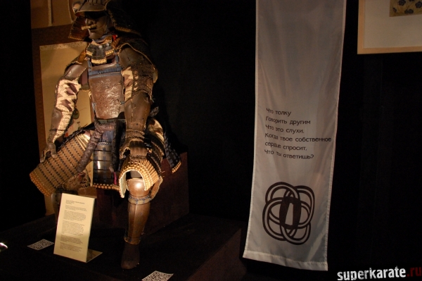 Изначально выставка планировалась до 28 февраля, поэтому многие, оставив дела, спешили туда в последний день работы. Для меня, как не профессионала в самурайском деле, но искреннего любителя культуры Японии, эта выставка стала настоящим открытием. Поднявшись на лифте на 6 этаж пентхауза отреставрированного архитектурного памятника XVIII-XIX веков Мещаниново подворье, сразу на входе я узнала, что «Самураи. Art of War» - это первая в России выставка с использованием 3D-технологий.Тут же, получив 3D-очки, вы можете посмотреть объемный 15-минутный фильм о доспехах самураев, их быте, образе жизни и знаменитом Токугава Иэясу.