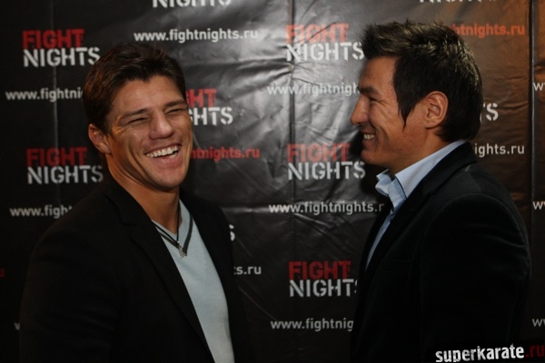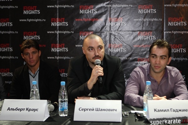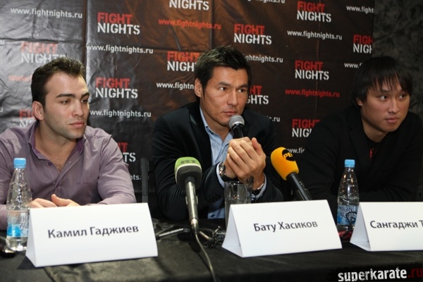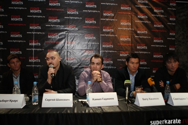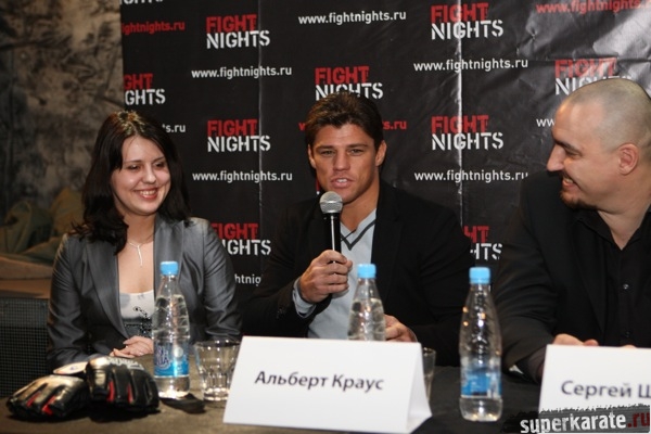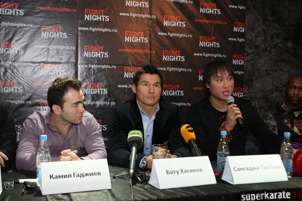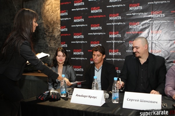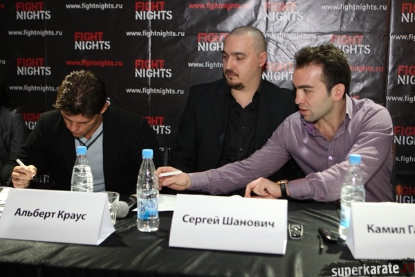 Среди участников пресс-конференции были участники главного боя турнира Альберт Краус (Голландия) и Бату Хасиков (Россия), подписавшие соглашение о своем поединке.