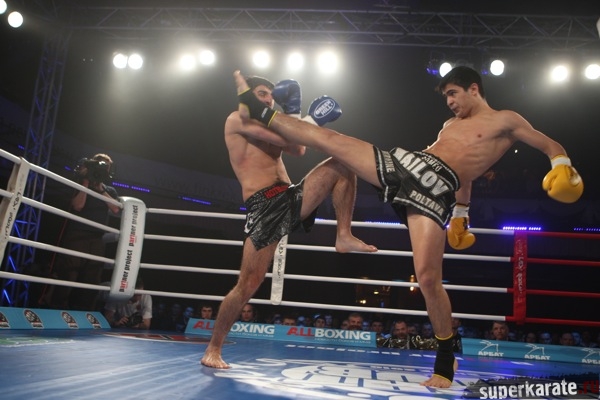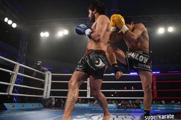 Наступила очередь супербоев. В первом из которых в весовой категории до 63,5 кг на ринг вышли Роман Маилов (Украина) и Рамиль Новрузов (Беларусь). Маилов сразу же пошел вперед и начал работать первым номером. Однако Новрузов стал удачно работать на контратаках, постоянно выигрывая отдельные эпизоды. Так продолжалось вплоть до середины второго раунда, когда разозленный Маилов чуть прибавил, а вот Наврузов наоборот немного сдал. И над ним нависли неприятности, но он все-таки сумел закончить второй раунд. Но сдержать напор Маилова в третьем раунде спортсмен из Беларуси уже не смог. Несколько точных ударов Романа Маилова делали свое дело, сломали Нарузова. И после очередной атаки украинского спортсмена Рамиль Новрузов оказался на настиле ринга. Рефери отсчитал до 10, зафиксировав тем самым победу Романа Маилова нокаутом в третьем раунде.
