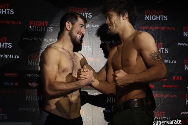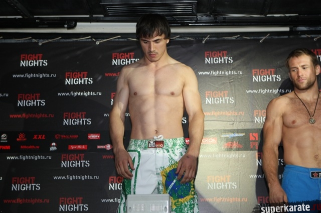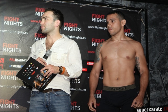 6 июля в Москве, в клубе "Гараж", прошло официальное взвешивание спортсменов, которым 7 июля предстоит выступать на турнире "Битва под Москвой 4". Это красочное шоу проводится промоутерской компанией Fight Nights. По окончании церемонии взвешивания состоялась пресс-конференция.