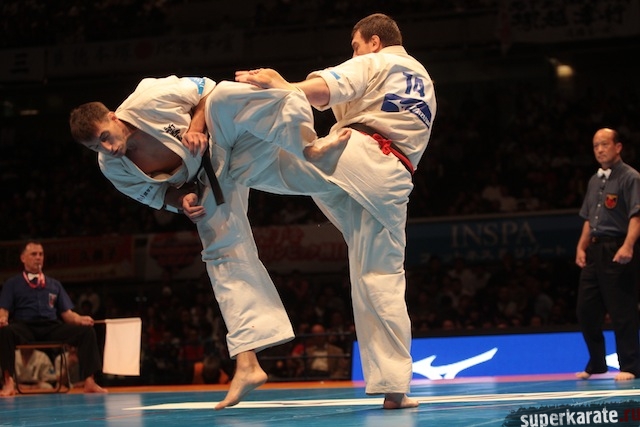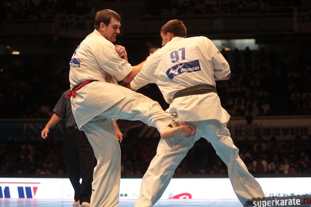 Роман Нестеренко (Россия) и Евгений Андрюшко (Россия) встретились друг с другом на пути в полуфинал. Победил Роман Нестеренко, который в конце первого добавленного времени сумел достучаться до печени своего мощного оппонента.