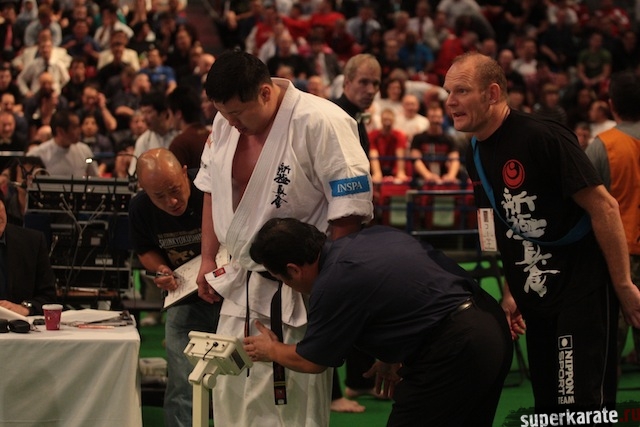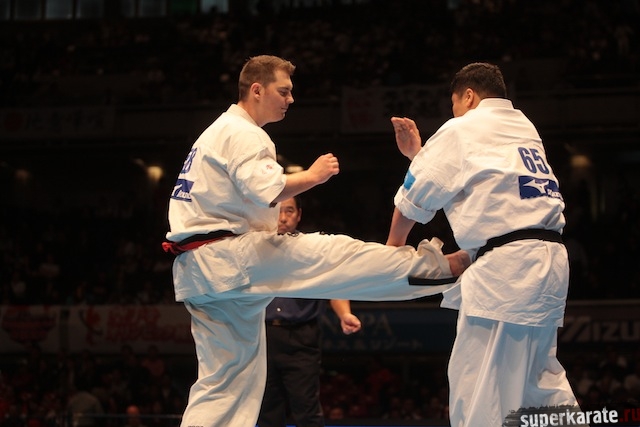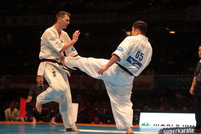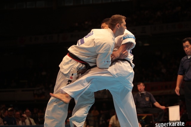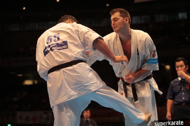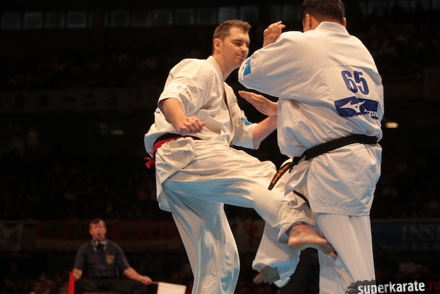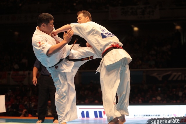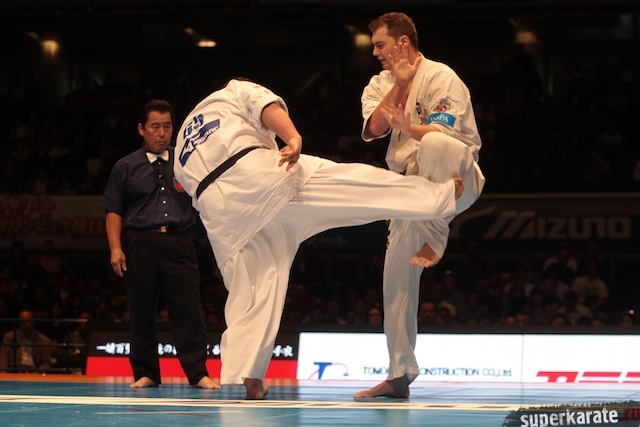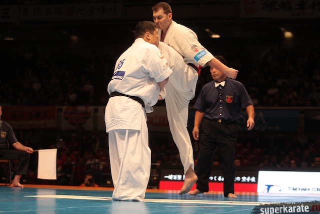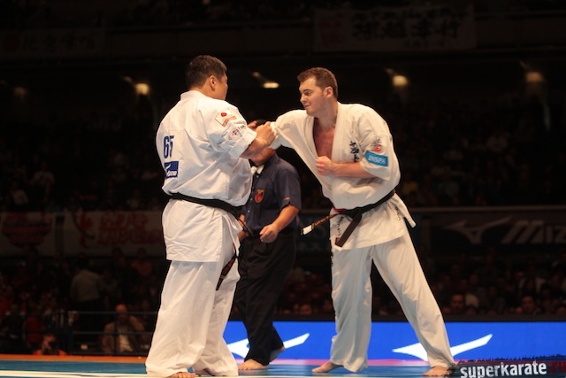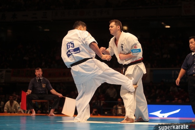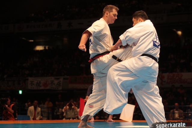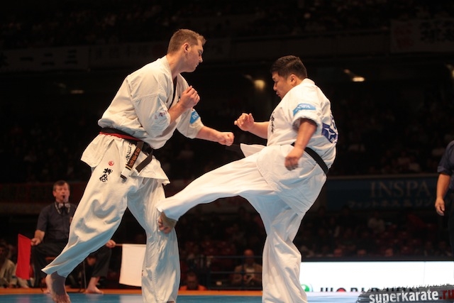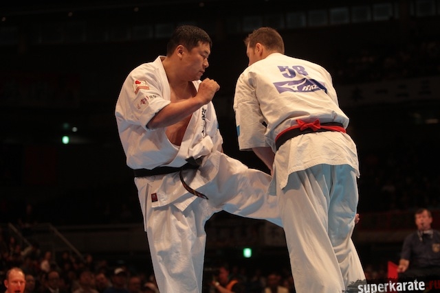 Поединок 1/16 финала чемпионата Мира по шинкиокушинкай, в котором знаменитый Такаюки Цукагоши (Япония) проиграл после второго добавленного времени Брайану Якобсену (Дания).