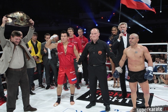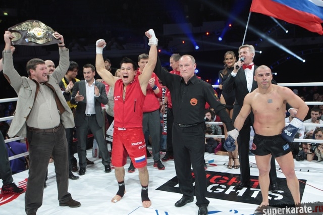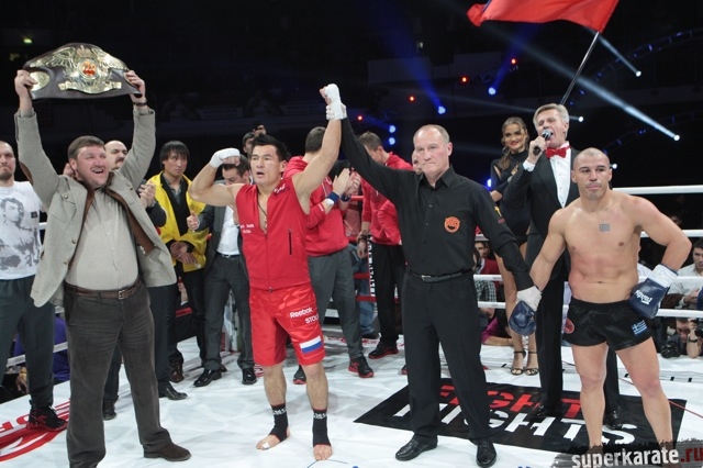 Вчера на турнире «Битва под Москвой 5», Бату Хасиков завоевал титул чемпиона Мира по кикбоксингу среди профессионалов по версии W5, победив техническим нокаутом в первом раунде легендарного Майка Замбидиса.
