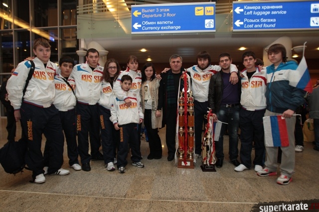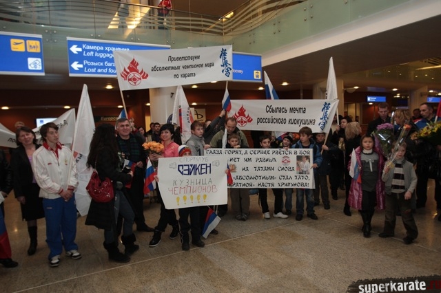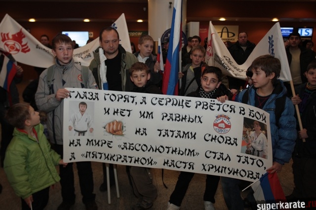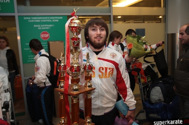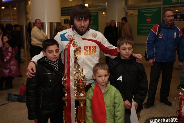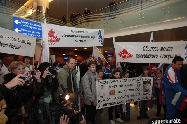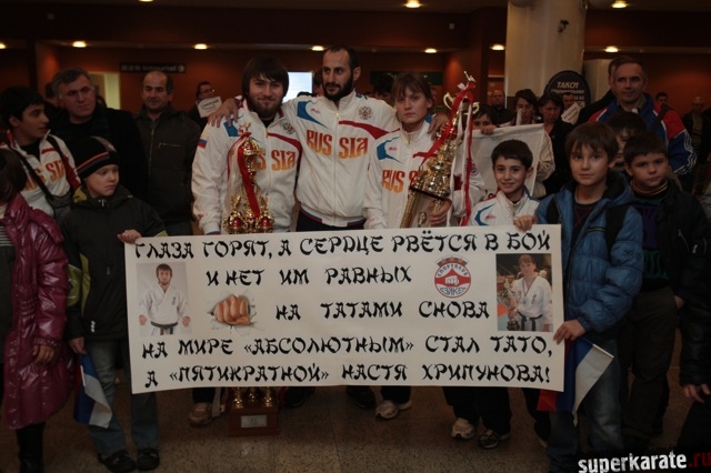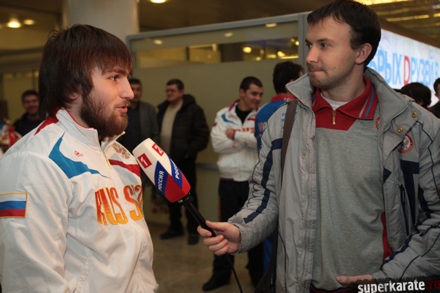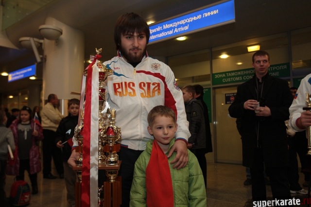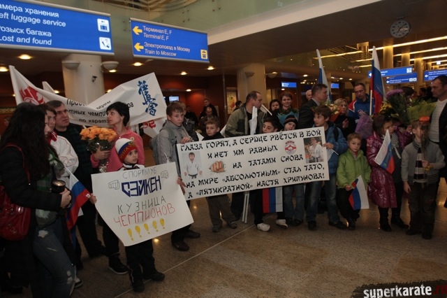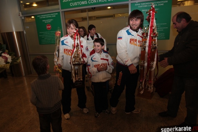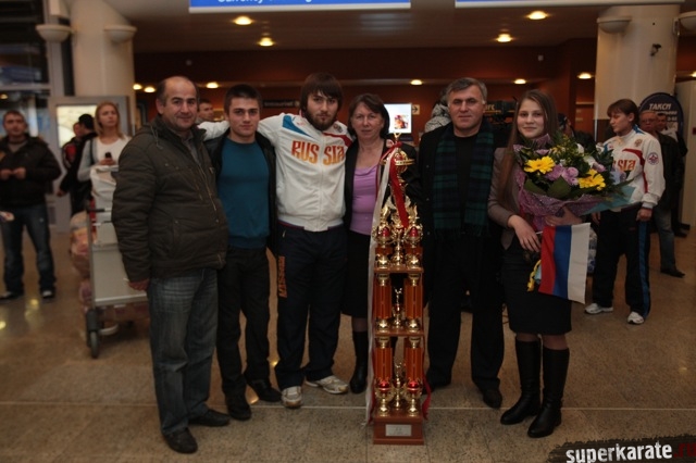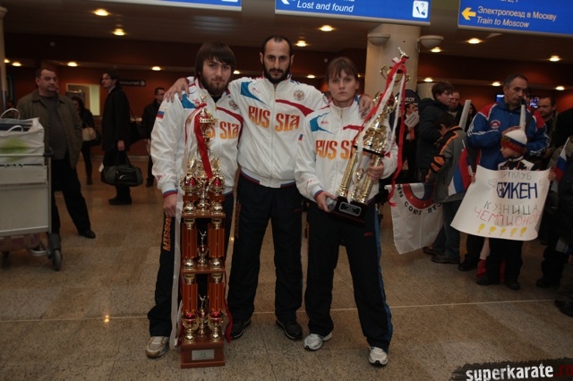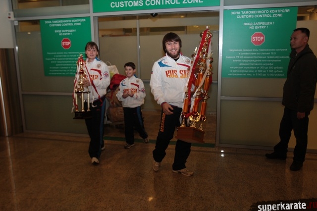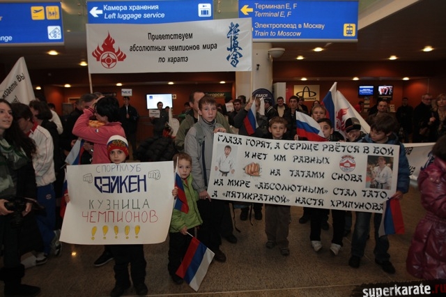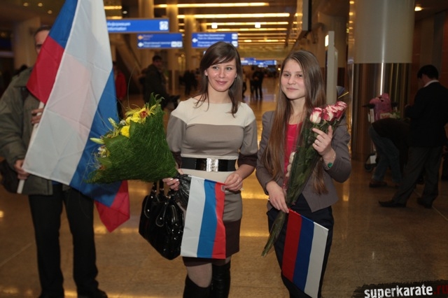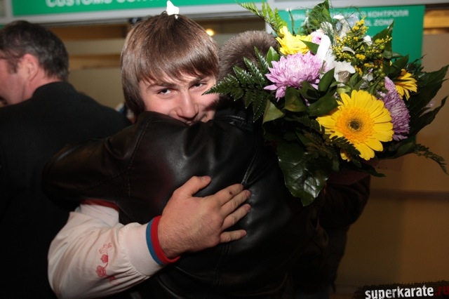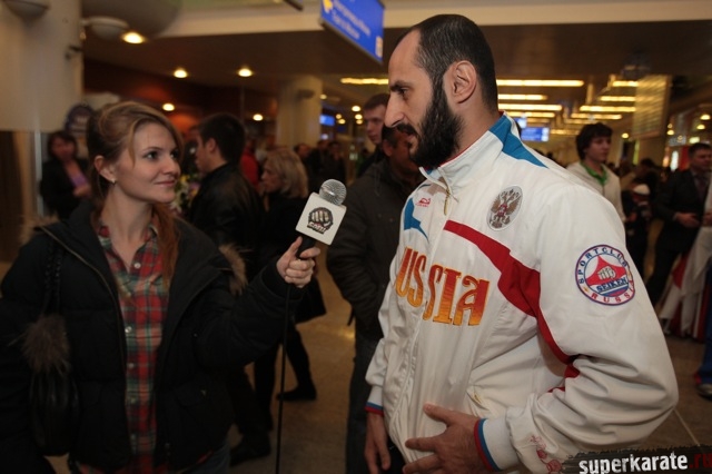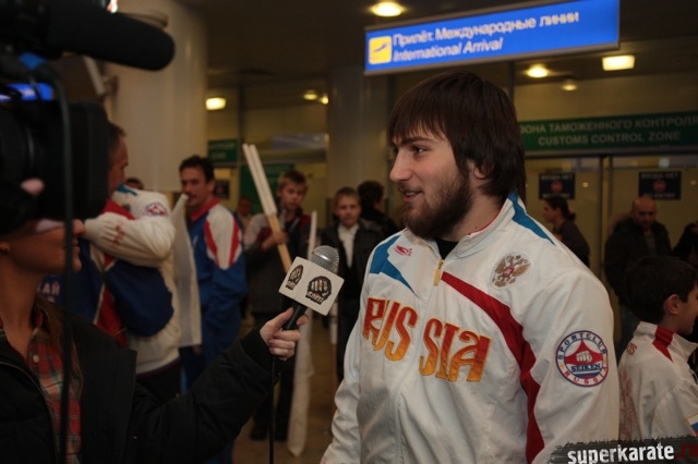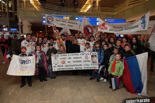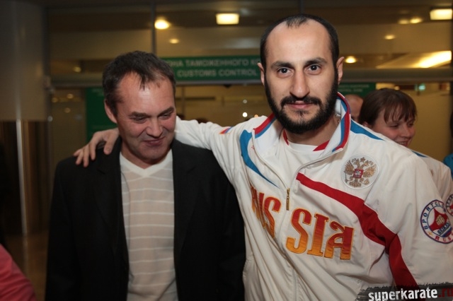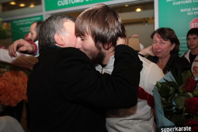 Сегодня вечером абсолютные чемпионы Мира по киокусинкай (IKO) Тариел Николеишвили и Анастасия Хрипунова прибыли в Москву.