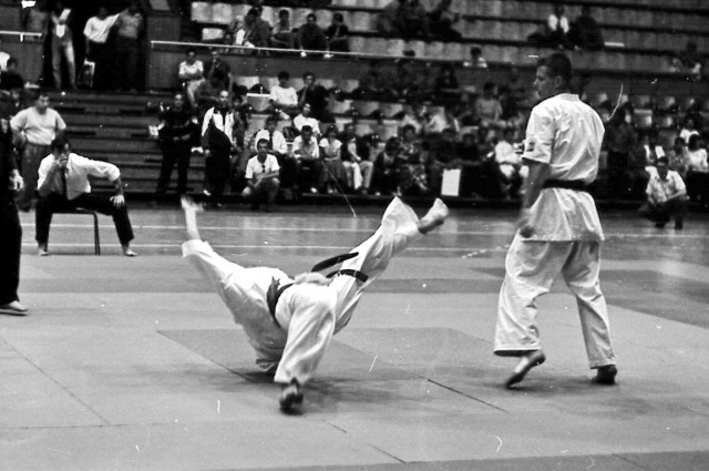 Предлагаем вашему вниманию фоторепортаж Сергея Герасимова с Чемпионата СНГ по каратэ киокушинкай 1993 года в Киеве, снятый на фотоаппарат "СТАРТ" 1962 года выпуска со вспышкой, которая синхронизируется 1:60, в зале со слабым освещением на плёнку СВЕМА 65.