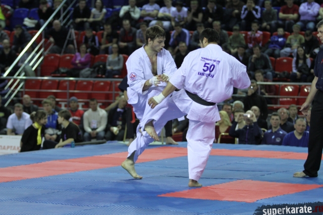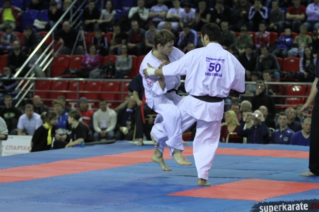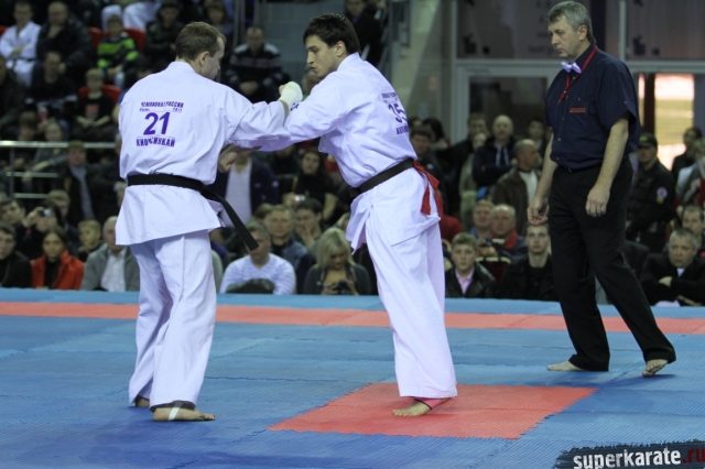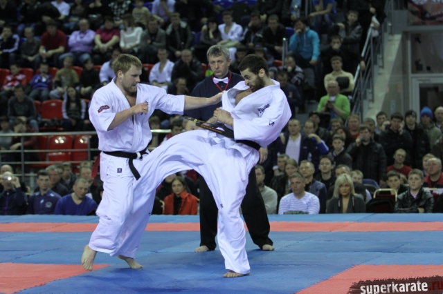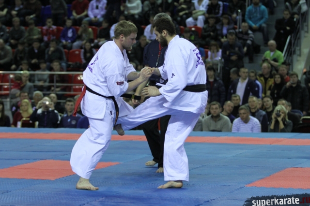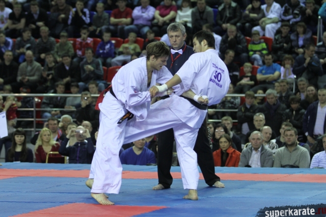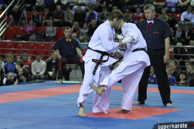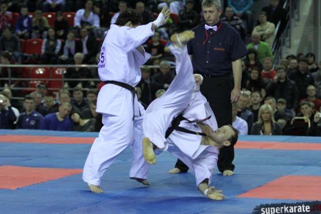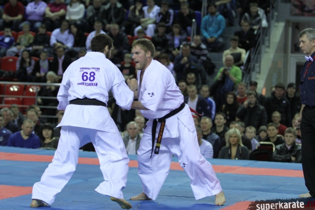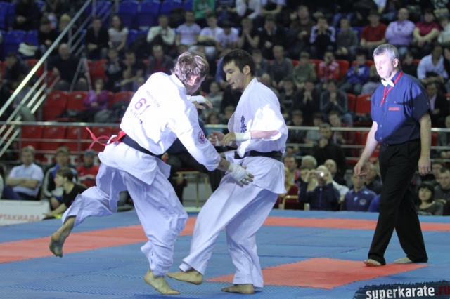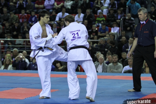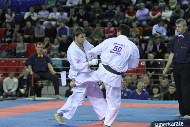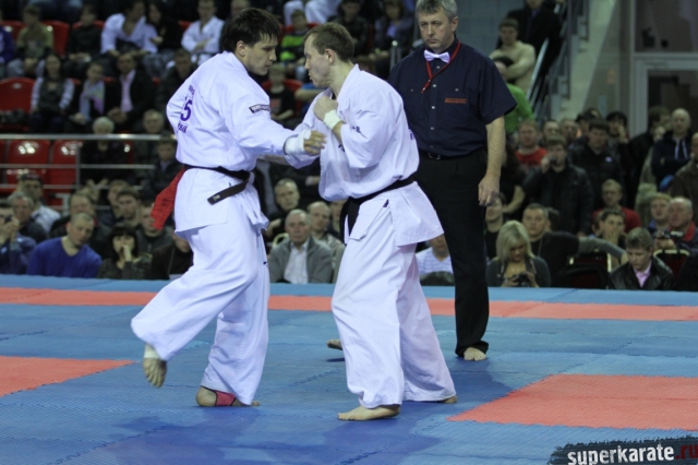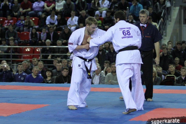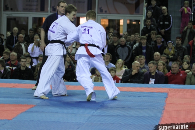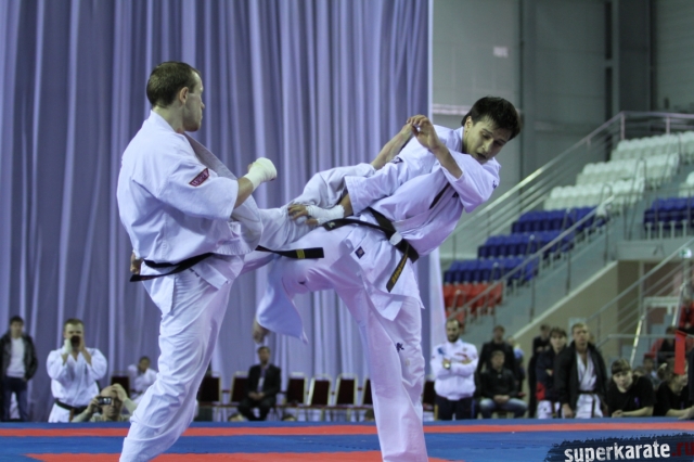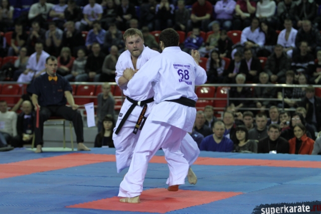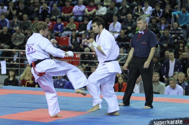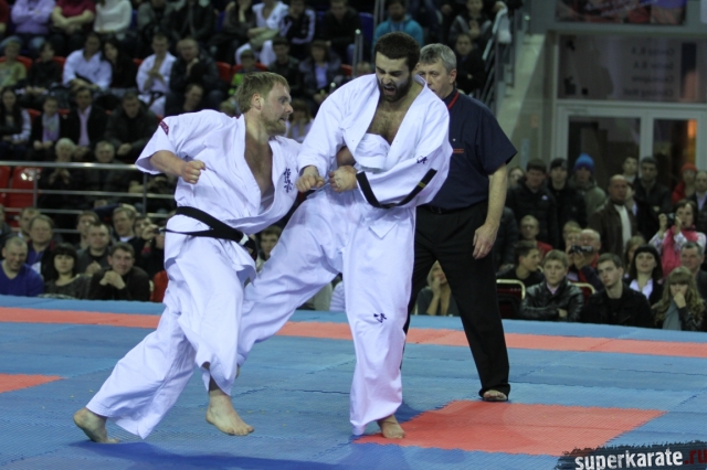 В мужских финалах Чемпионата России по каратэ киокушинкай сошлись на татами пары бойцов: Роман Семченко и Александр Михайлов, Игорь Титков и Лаша Габараев, Дармен Садвокасов и Иван Мезенцев, Годерзи Капанадзе и Сергей Увицкий.