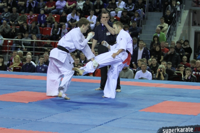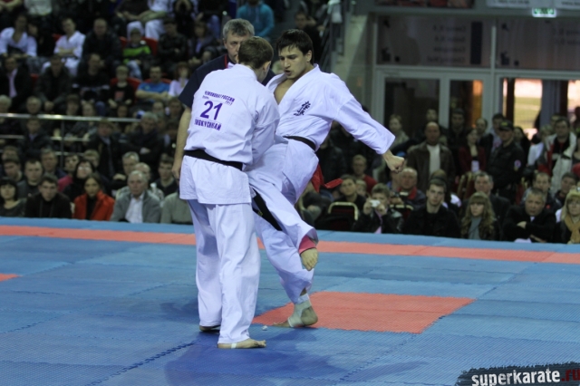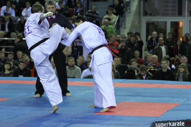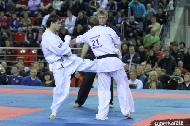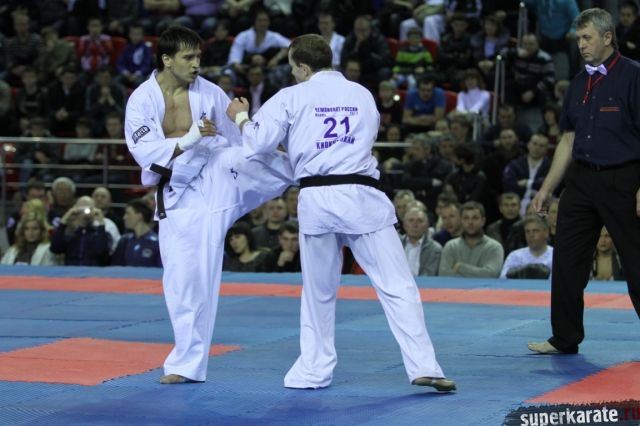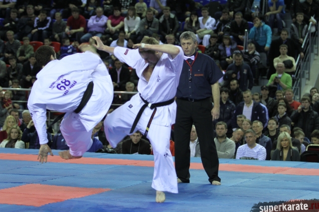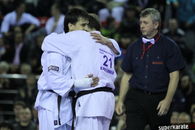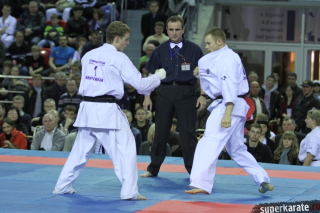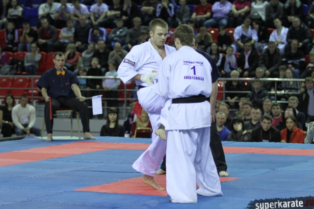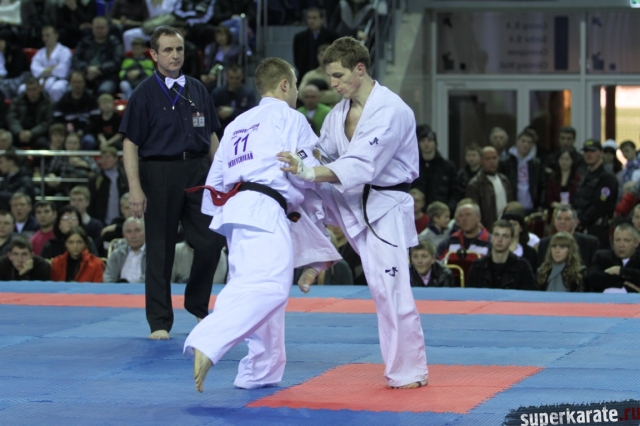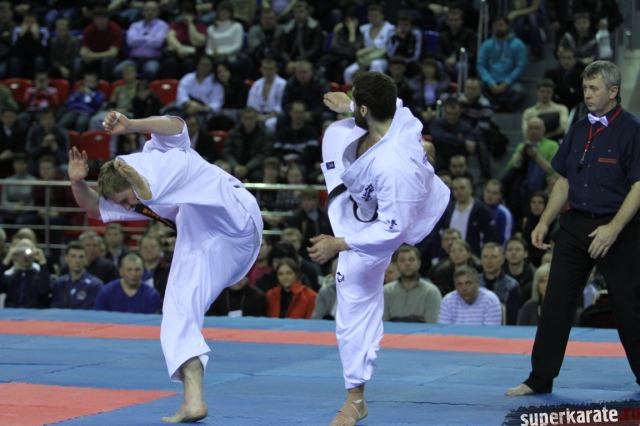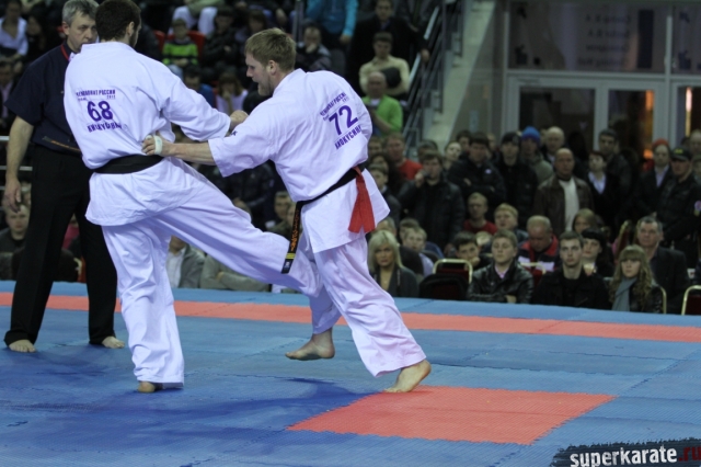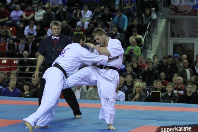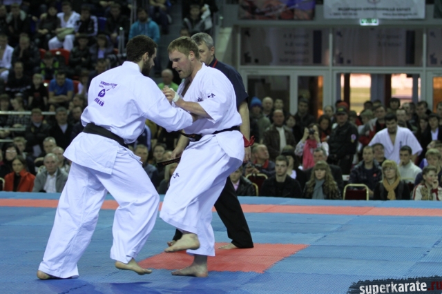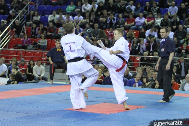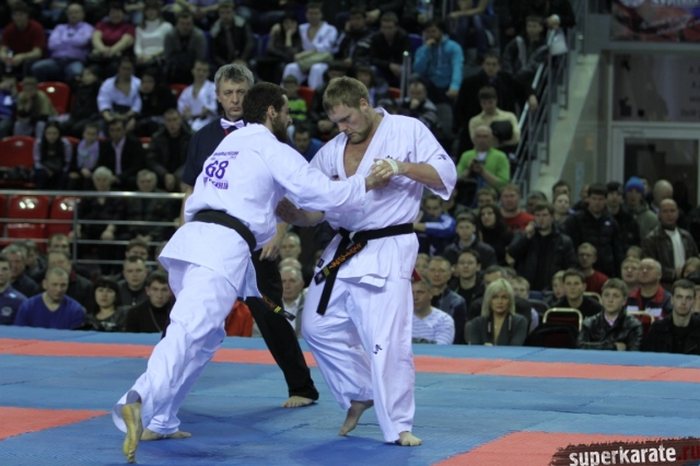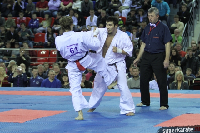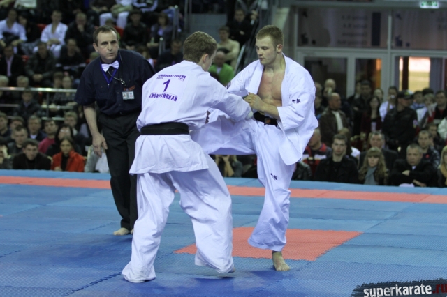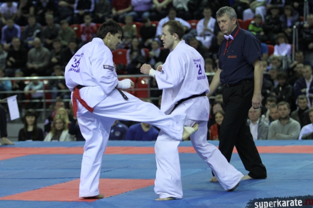 В мужских финалах Чемпионата России по каратэ киокушинкай сошлись на татами пары бойцов: Роман Семченко и Александр Михайлов, Игорь Титков и Лаша Габараев, Дармен Садвокасов и Иван Мезенцев, Годерзи Капанадзе и Сергей Увицкий.