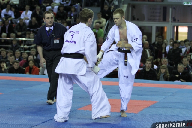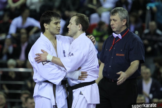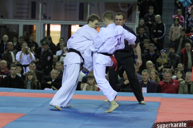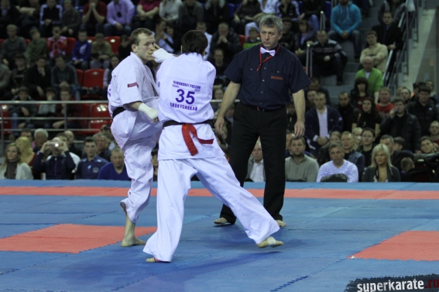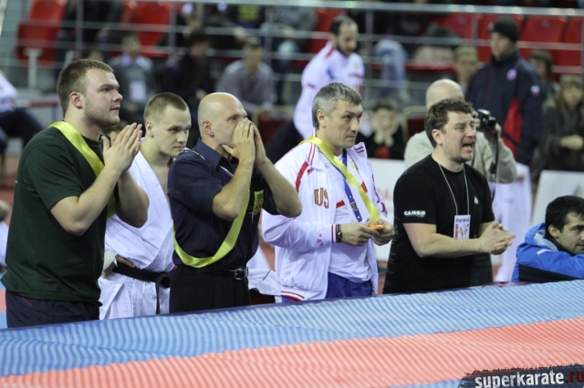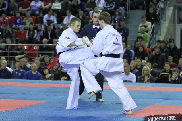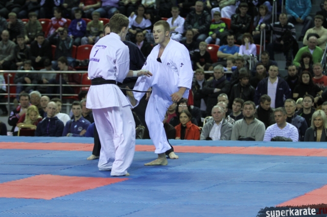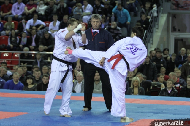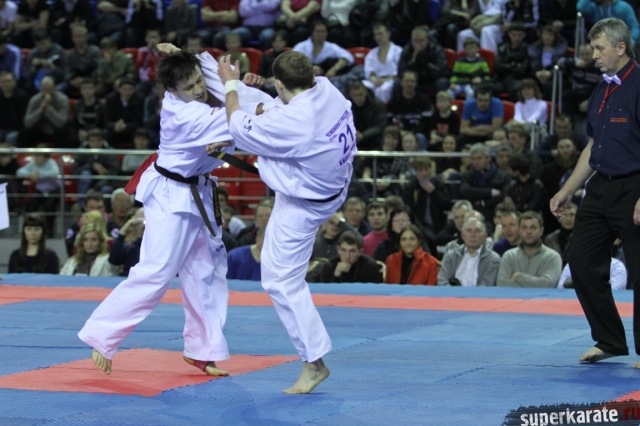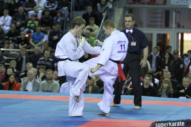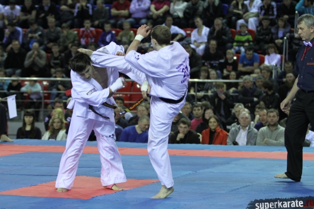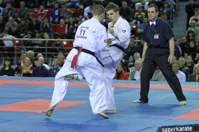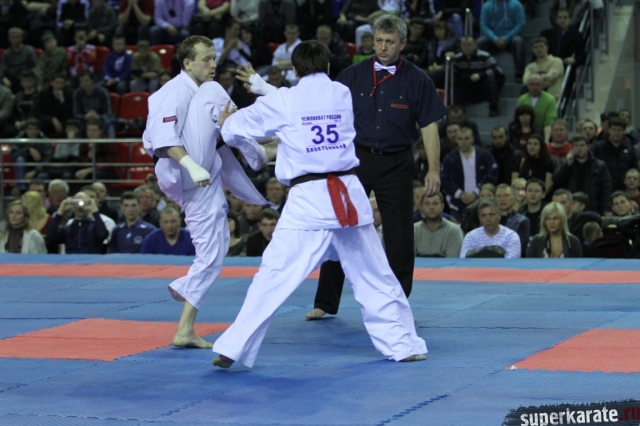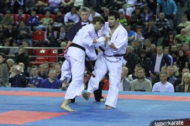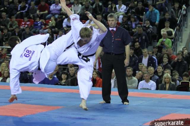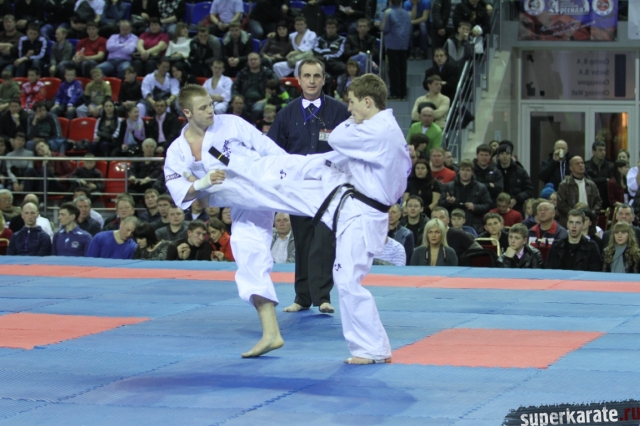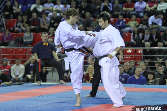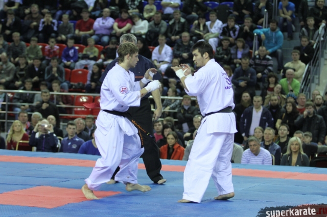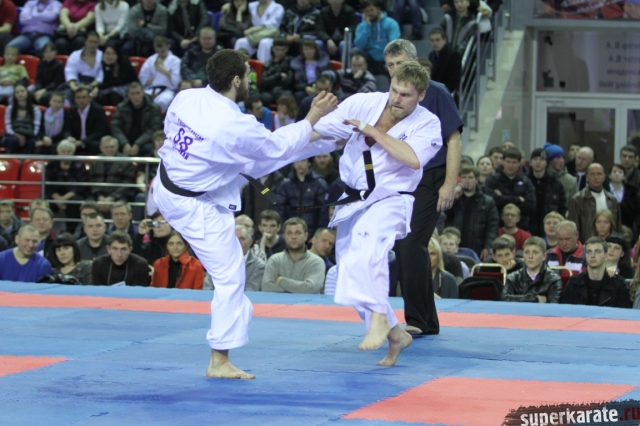 В мужских финалах Чемпионата России по каратэ киокушинкай сошлись на татами пары бойцов: Роман Семченко и Александр Михайлов, Игорь Титков и Лаша Габараев, Дармен Садвокасов и Иван Мезенцев, Годерзи Капанадзе и Сергей Увицкий.